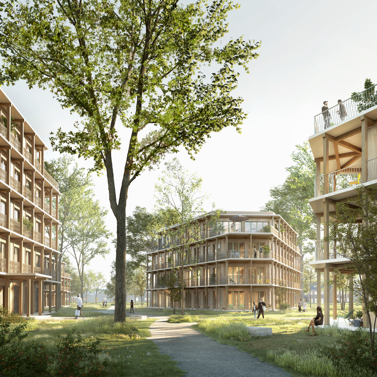 The vision builds on the site’s existing qualities and its layered context. Historic landscape structures, the orthogonal layout of the former barracks, the elongated sightlines, and the sober, functional use of materials form the foundation of the design. The strength and identity of the place do not lie in individual objects, but in the ensemble value of the whole. This coherence is not only respected, but actively employed as the framework for the new district.