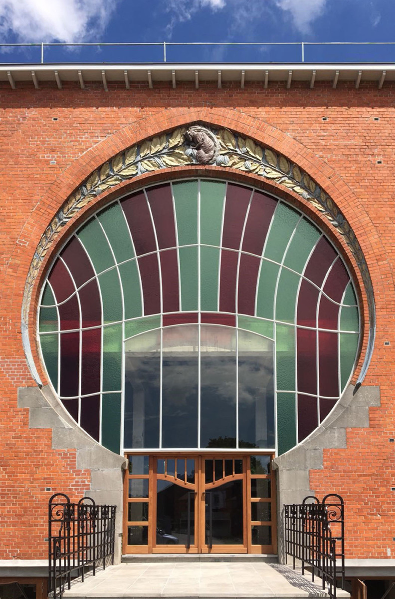 The new glass window of the ‘Chocolate Factory’ in Tongeren has been inaugurated. With a diameter of 6m this 110 year old work of art is the largest of its kind in an industrial environment. The inauguration is part of the transformation of this industrial building characterized by beautiful Art Nouveau elements.