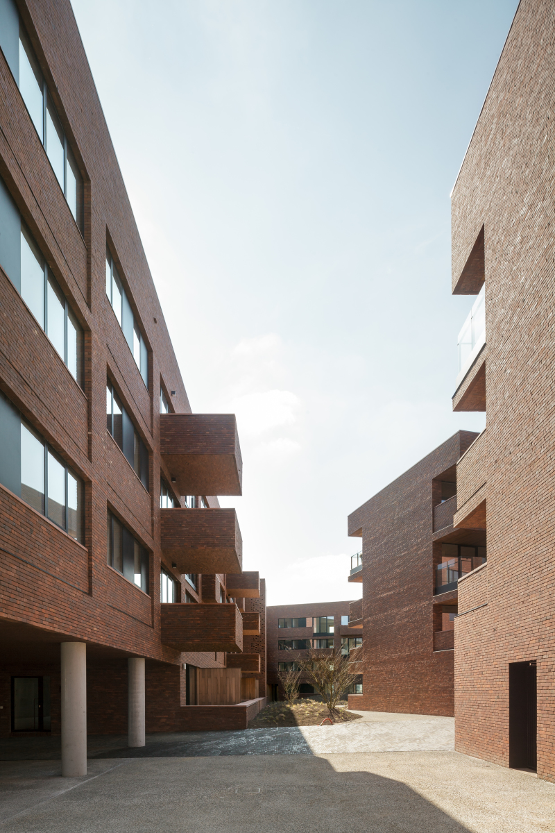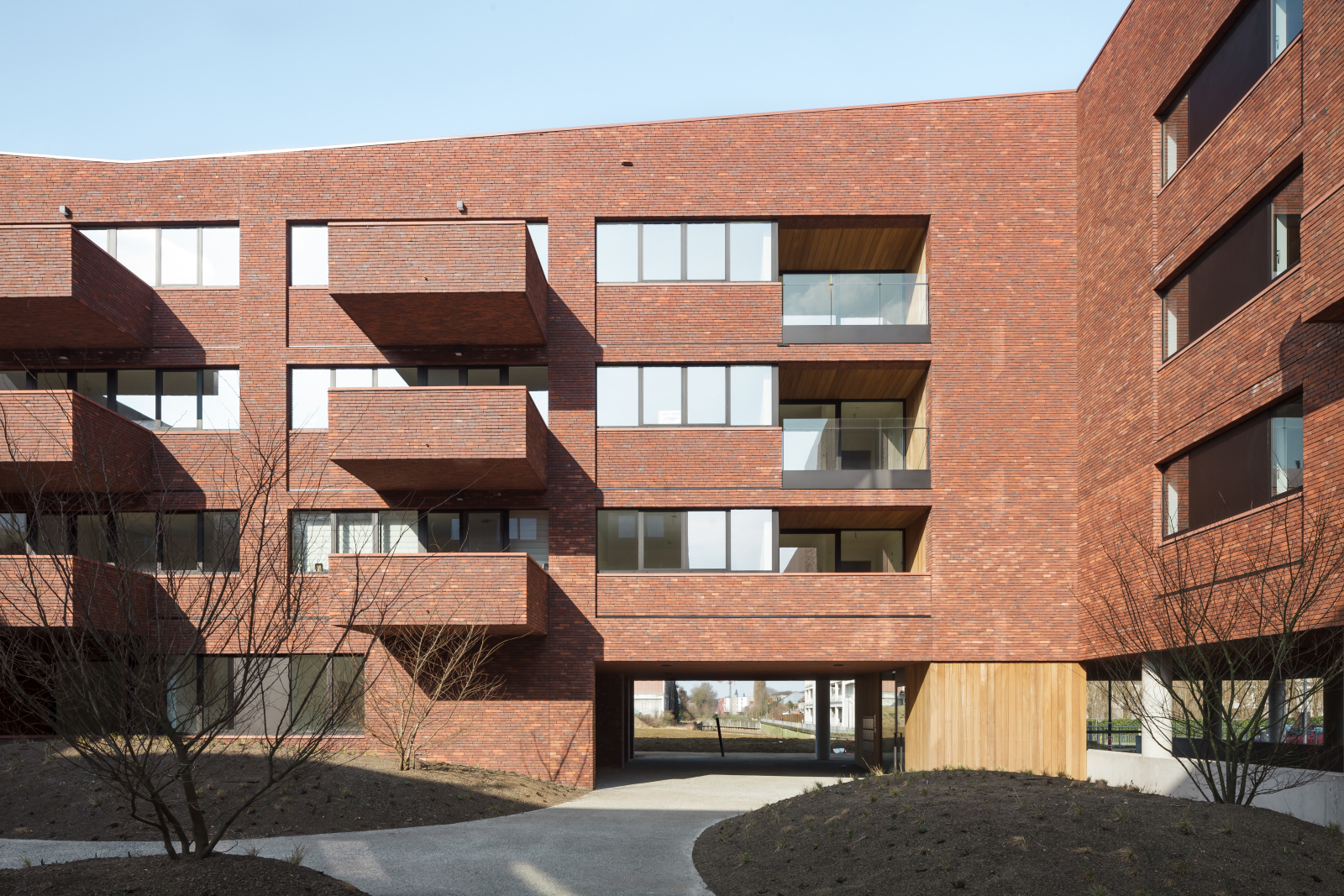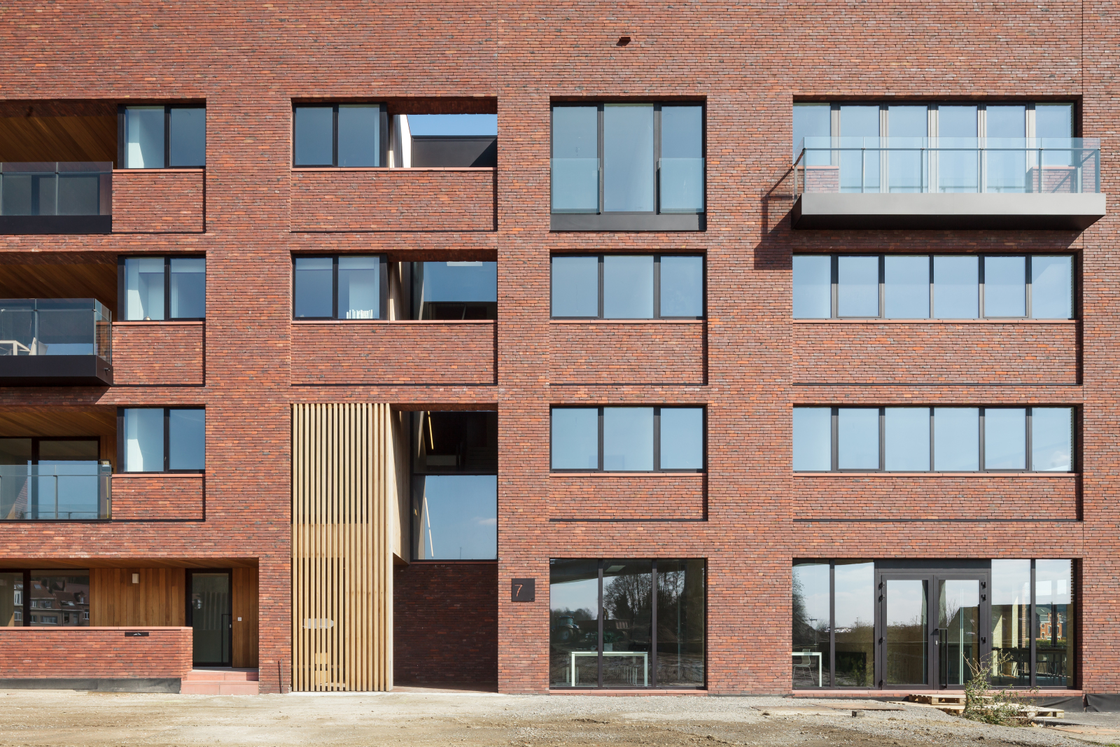 ‘t Sas succeeds in responding to the multiformity of the site and the diversity of the environment with a universal block. This results in a highly sustainable, robust and connective building, which offers an optimal combination of individual quality of living and collective experience. The minimally slanting roofs create a dynamic image. The rational division of the surfaces and the subtle three-dimensional effect in the brickwork is highly refined. The alternation of internal and external terraces creates both depth and playfulness. The restrained architectural vernacular of the courtyard garden and the finely detailed facades provide architectural solutions for the acoustic pressure of the nearby viaduct, school building and the public domain. In this way, ‘t Sas - a monobloc structure that references to the monumental industrial architecture that once characterised this site - now reconnects this regained part of the city at the human scale.