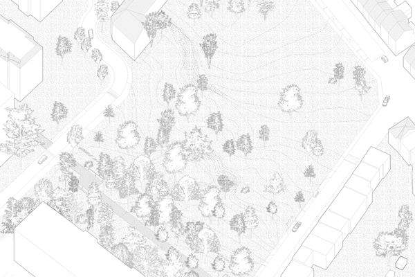 Together with the current fragmented urban fabric, consisting of a historic approach road, modernist high-rise buildings and a more recent assisted living centre, this constitutes the basis for the design of a new structured landscape.