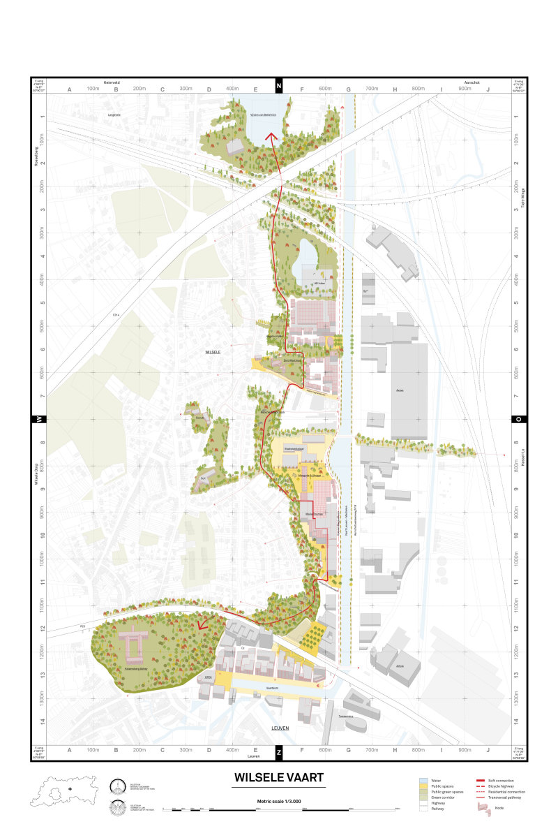 With the redevelopment of the 4,5h industrial site bordering on this lef bank, the need for a vision emerges. Given the complex condition of the area and the lack of a clear spatial framework, the urban project becomes again the starting point for a territorial strategy for the future of the Vaart and the village of Wilsele. The acknowledgment of the Vaart as a valuable hybrid urban space combined with the recognition of the rooted qualities of the landscape and its topography are key in designing a new spatial backbone for gradual transformation. The approach aims to transcend existing horizontal methods of planning and seeks to explore innovative architectural typologies and new coalitions of stakeholders. Finally, the project is both investigating and putting to practice the reintegration of the valley and its canal as combining new models of living and working in the 20th century fringe.